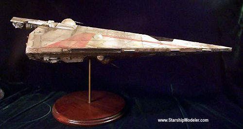 This is a scratch-built Scout Ship from the RPG Traveller. It is constructed from foam-core with applique' armor glued to it. 24 inches long, and 14 inches wide, it works out to 1/72nd scale. All of the graphics and tech info in the rulebooks never really fleshed out the workings of the scout. I made several drawings and deck plans to accurize it. The only "add-on" was the Jump-projector at the tail end over the engine ports. This was added to tell the top from the bottom. As you can see, without it, it would look basically the same. The figures are 1/72nd flight deck crew.